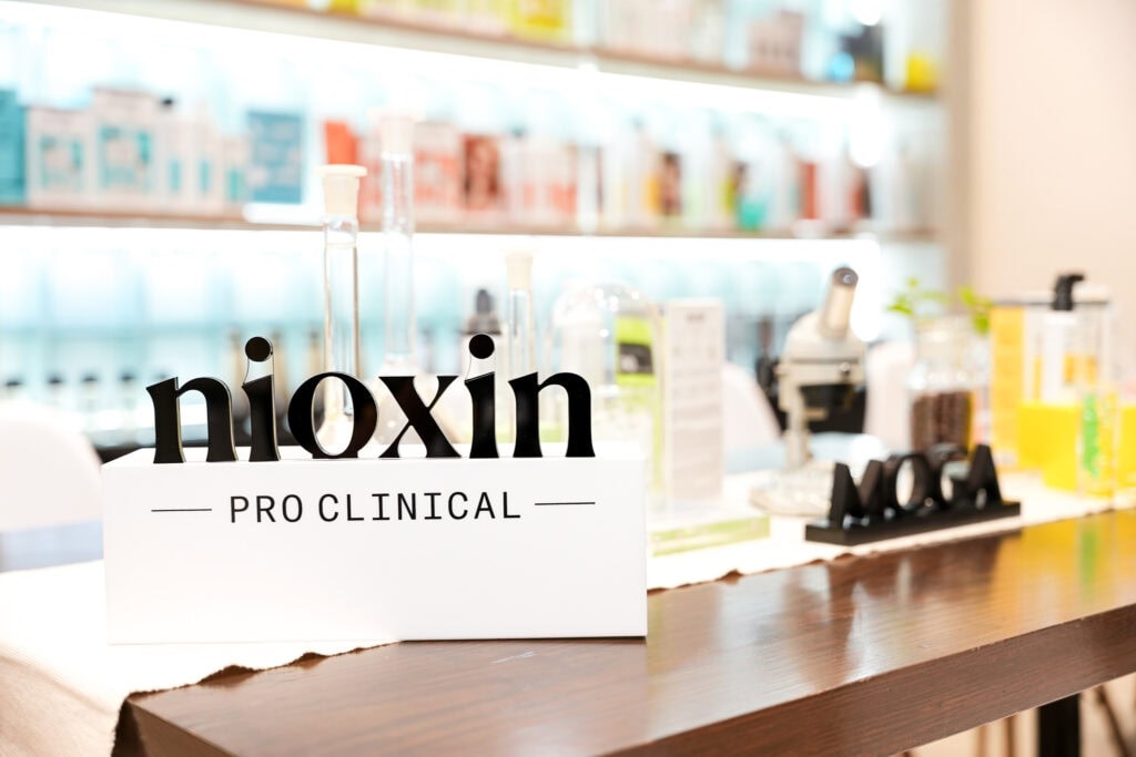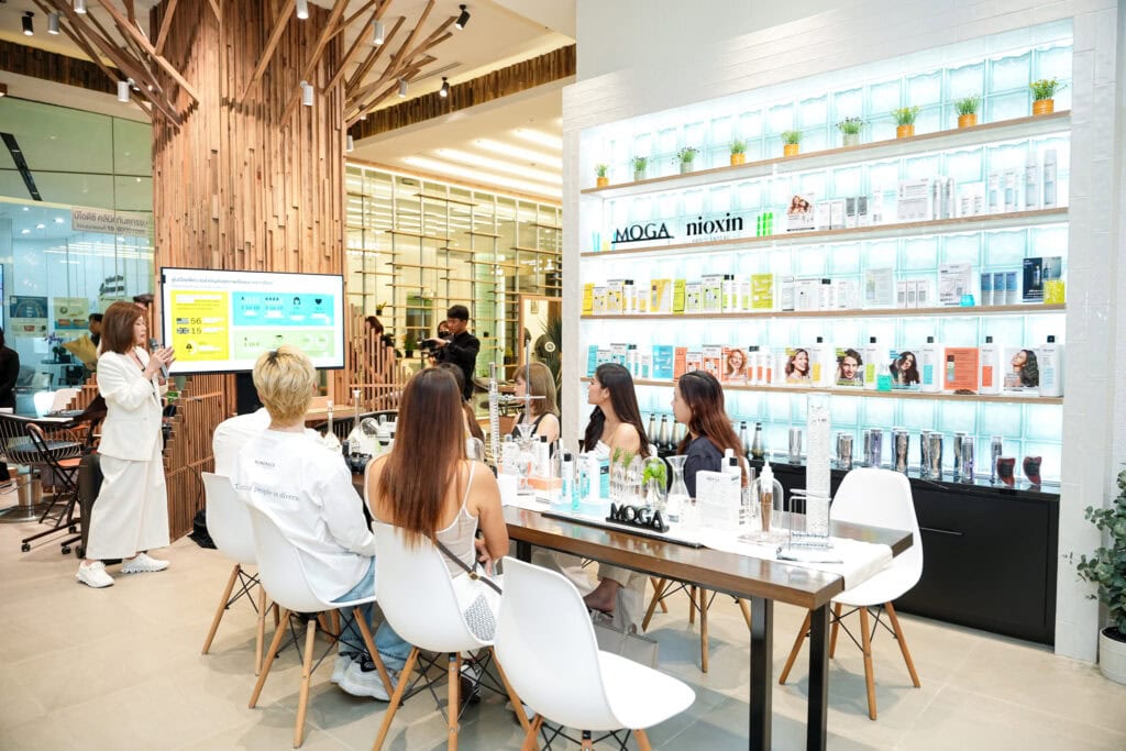 ภายในงานได้มีการบรรยายถึงความพิเศษของผลิตภัณฑ์ NIOXIN® PROCLINICAL รวมไปถึงการพัฒนาสูตรส่วนผสมที่สำคัญอย่าง Niacinamide, Caffeine และ Biotin ซึ่งช่วยในการบำรุงรากผม เสริมความหนาแน่น และเพิ่มความแข็งแรงให้เส้นผมได้อย่างมีประสิทธิภาพ พร้อมวิเคราะห์หนังศีรษะและเริ่มขั้นตอนการดูแลหนังศีรษะด้วยผลิตภัณฑ์ NIOXIN Scalp Renew Dermabrasion ทรีทเมนต์เฉพาะที่ช่วยผลัดเซลล์หนังศีรษะอย่างอ่อนโยน และฟื้นฟูสมดุลหนังศีรษะ กระตุ้นให้เส้นผมงอกใหม่ได้ดียิ่งขึ้น ซึ่งบริการนี้ถือว่าเป็นไฮไลท์สำคัญของ NIOXIN ที่เปิดให้บริการเฉพาะซาลอนที่ผ่านการอบรมมาตรฐานและ MOGA ซึ่งไม่ได้มอบเพียงแค่บริการด้านความงาม แต่ยังสร้างประสบการณ์ที่ครอบคลุมทั้งสุขภาพและความรู้สึกผ่อนคลาย โดยช่างผู้เชี่ยวชาญทุกคนผ่านการอบรมจาก NIOXIN ด้านการวิเคราะห์หนังศีรษะและการเลือกสูตรบำรุงเฉพาะบุคคล เพื่อให้การดูแลตรงกับปัญหาและความต้องการของลูกค้าให้เป็นช่วงเวลาแห่งการพักผ่อนที่แท้จริง